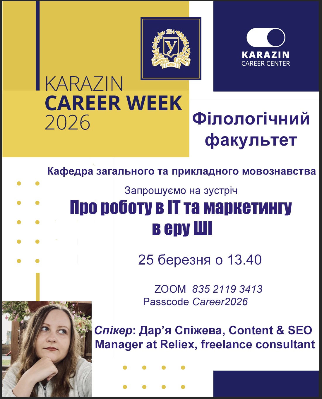 Запрошуємо студентів філологічного на цікаві зустрічі в межах Karazin career week